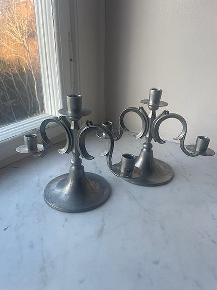 Ljusstakar, ett par i tenn av Edvin Ollers