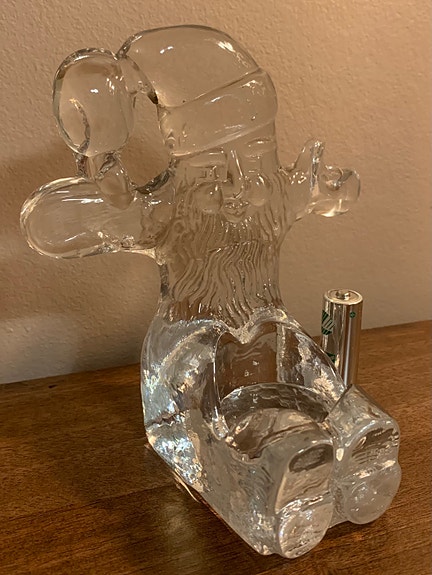 Detta är en Kosta Boda "Tomte" ljuslykta i klarglas, designad av Bertil Vallien.