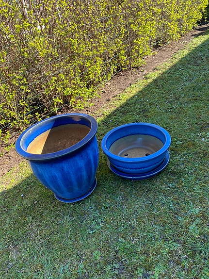 2 krukor i blå keramik