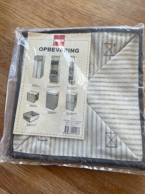Hopfällbar förvaringsväska i canvas, vit med blå ränder