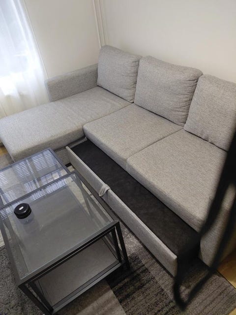 Bäddsoffan är perfekt för att välkomna gäster och som din egen säng i ett litet hem