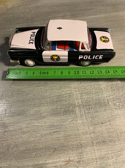 Polisbil Leksak Metall Svart och Vit 15 cm från 1970 talet
