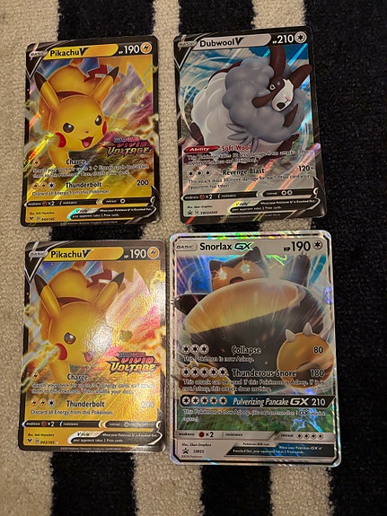 Pokémon GX samlarkort set med Pikachu, Snorlax, Charizard och Mimikyu