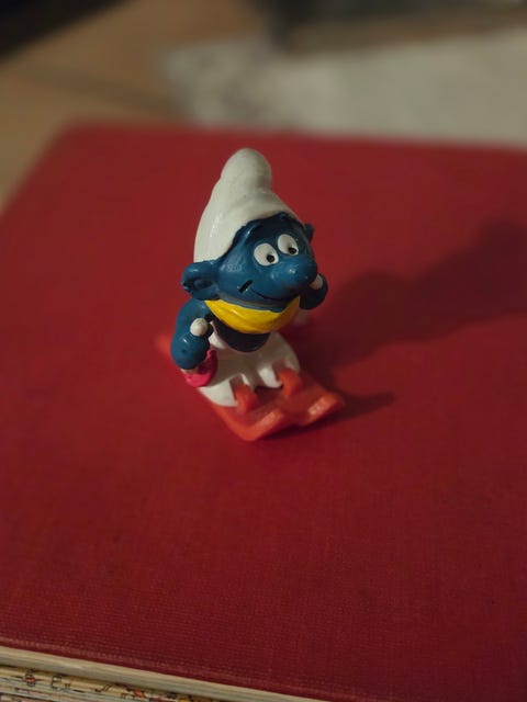 Figur smurf på skidor plast blå