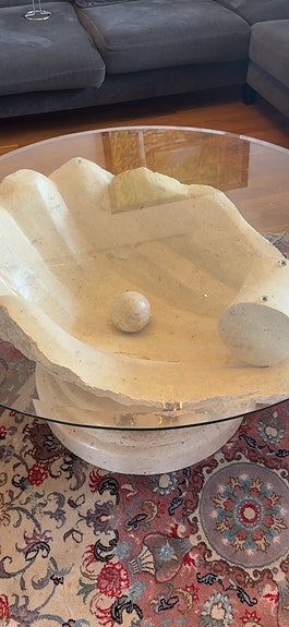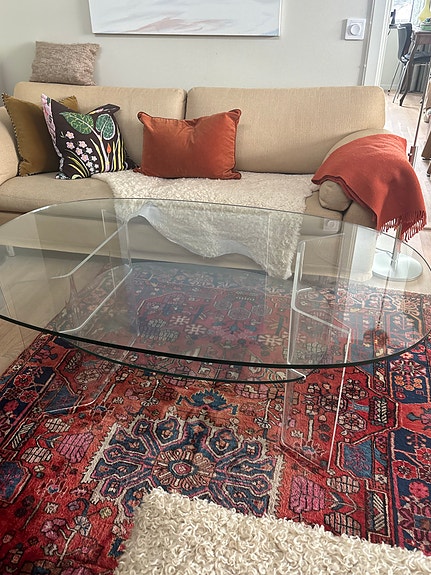 Ovalt glasbord/plexiglas