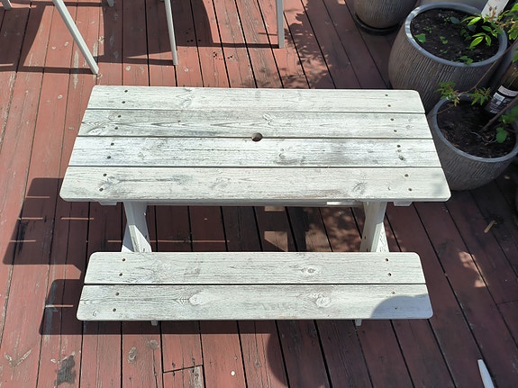 500 krRunt utebord i underhållsfritt kompositmaterial med trästruktur och metallstativOxie2 dagarLägg till i favoriter.