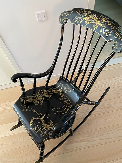 Svart gungstol med guldmönster