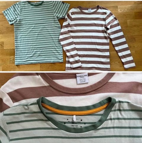Som förälder vet du att ljudet av tvättmaskinen är en del av vardagen. T-shirts, skjortor och toppar behöver finnas i stora mängder i garderoben, så att tvättmaskinen inte behöver gå hela tiden. När du köper begagnade skjortor och toppar blir priset lägre. Barntröjor är ofta gjorda av bomull. En begagnad bomulls-t-shirt kan vara extra bekväm för ett barn med känslig hud, eftersom den ofta känns mjukare tack vare fler tvättar.