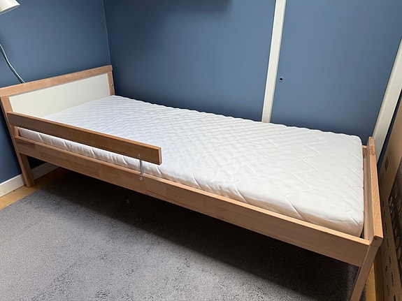 IKEA Sängstomme "SNIGLAR" med ribbotten "LURÖY" och madrass "UNDERLIG"