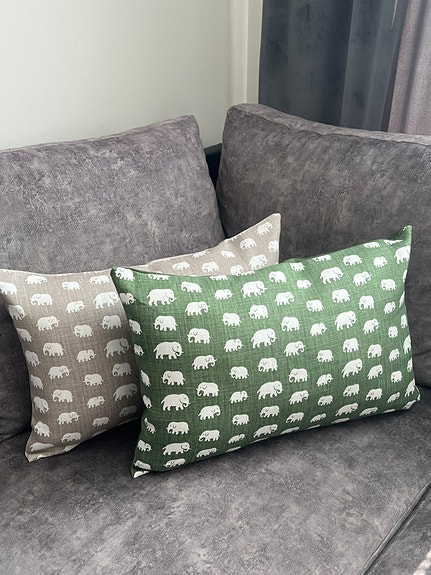 2st Kuddfodral/ Tyg Från Svenskt Tenn/ Estrid Ericson / Varm Grå , Grön Elefant