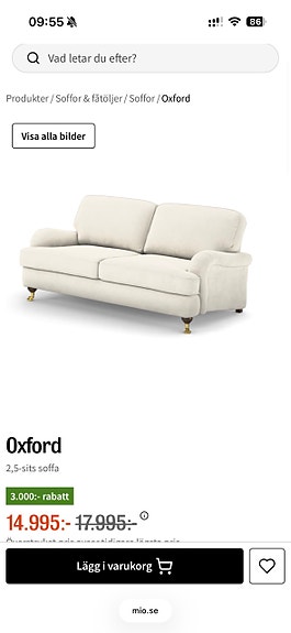 2 000 krVit Howard-liknande soffa från MIO, bra skick MioStockholm45 minLägg till i favoriter.Öppna annons