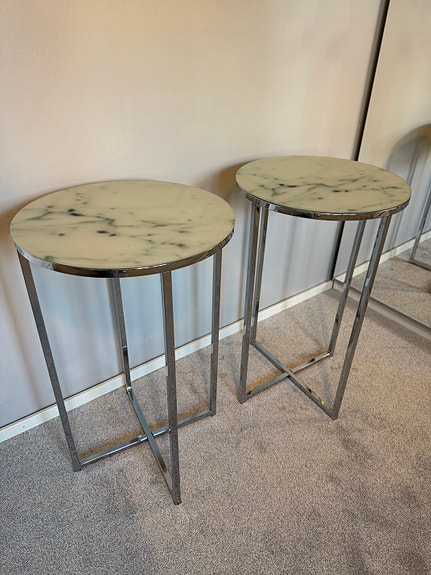 500 krModernt, marmormönstrat caféglasbord med metallben i krom. Guld liknande. MioSävedalen7 marLägg till i favoriter.Öppna annons