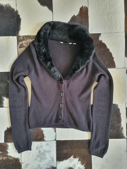 Svart tröja med fuskpälskrage strl 146-152. 150kr
