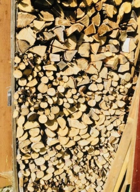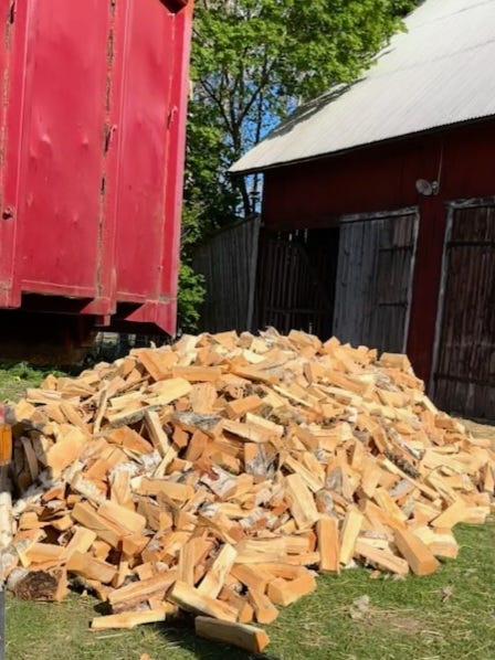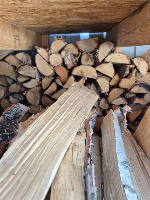 Björkved kapad och kluven