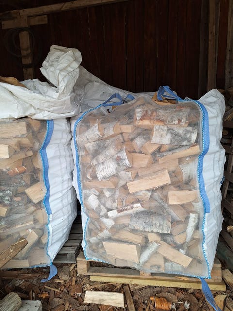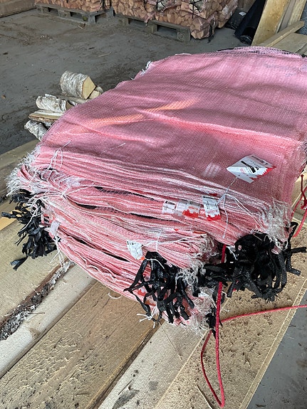 Ved i säck björk