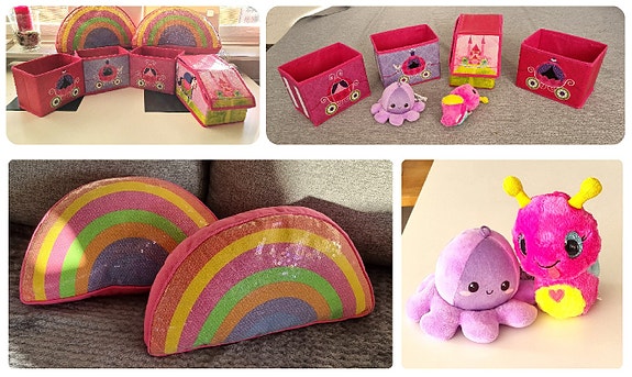 Prinsessset för barnrum – lådor, rengbågskuddar & mer