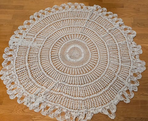 Virkad rund duk mörkbrun