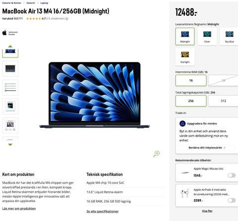 10 000 krApple MacBook Air 13 (2025, M4) 16/256 GB, midnatt AppleKarlstad32 minLägg till i favoriter.