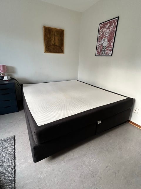 säng med madrass och Garderob