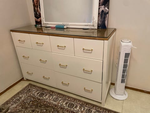 800 krIKEA byrå med flera lådor vit med mässingsfärgade handtag IKEAGävle4 dagarLägg till i favoriter.