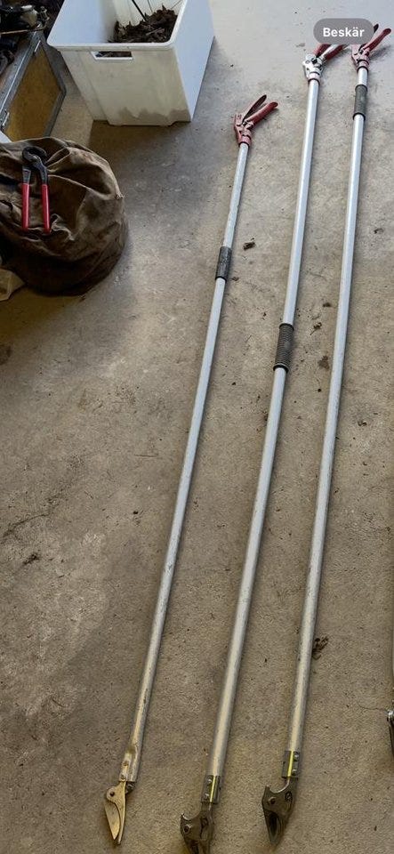 Trädgårdsredskap - från skottkärror till sopmaskiner och hängrännerensare kan köpas begagnade