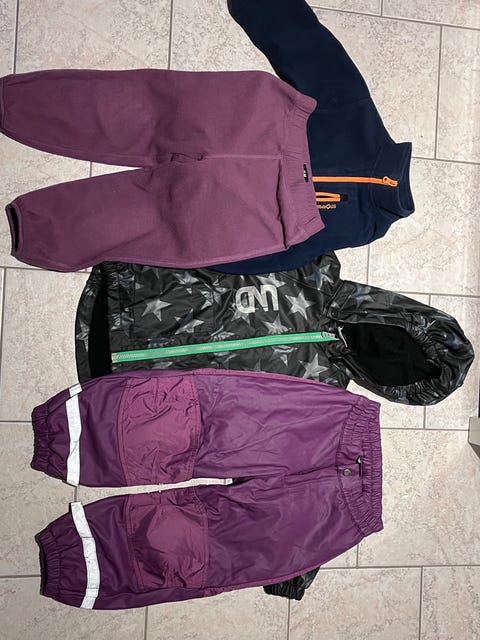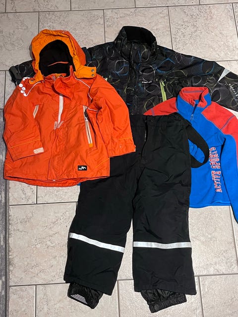Under vintern är det viktigt att hålla de små varma med rätt kläder: ulliga heldräkter, sockor, vantar, mössor och ytterkläder. En overall är ofta snabbare att ta på än separata jackor och byxor, och snön har svårare att tränga in. I annonserna bör du kolla skicket på ytterkläderna, till exempel hur bra muddar och ben kan justeras, om det finns många reflexer och om kläderna är vattentäta.