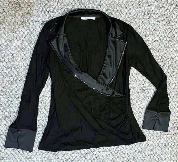 Vacker svart blus / topp med paljetter. Stl 38/40