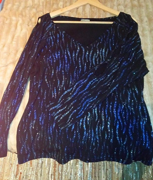 Blåglittrig blus