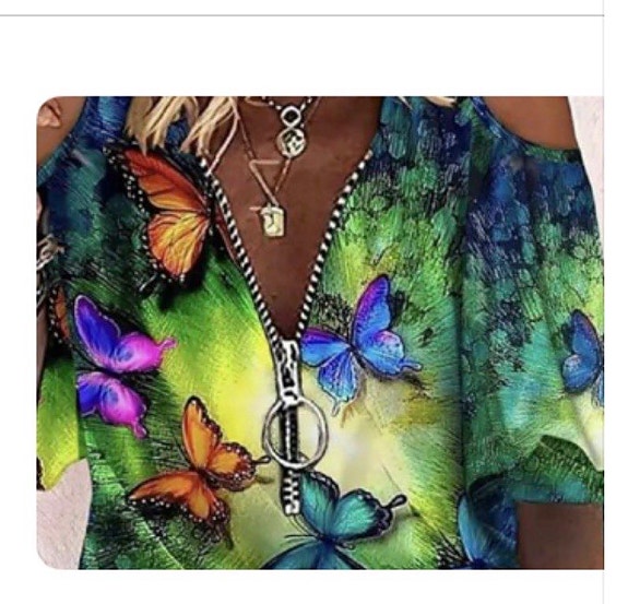 Färgglad topp med fjärilsmönster och dragkedja