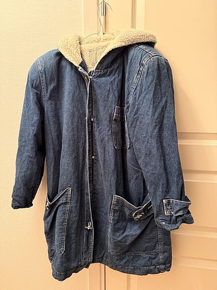 Fodrad knälång jeansjacka med metallknappar