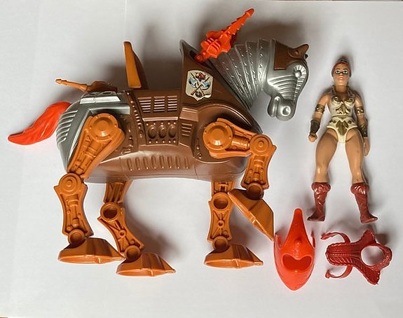 Vintage 1983 Teela & Stridor actionfigurer, Masters of the Universe, MOTU