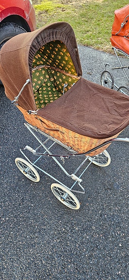 Barnvagn flätad korg brun