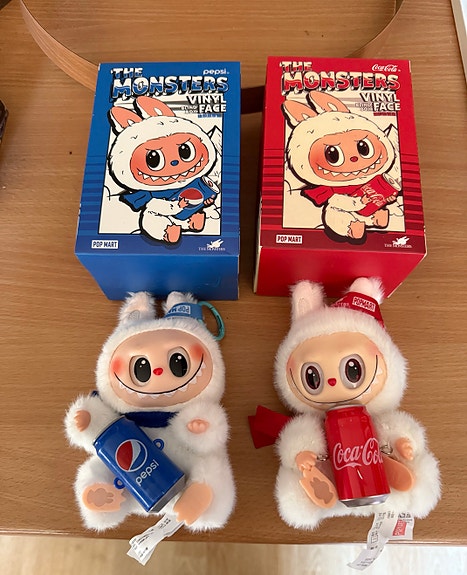 Pop Mart Labubu Coca Cola och Pepsi med kartong