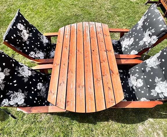 2 000 krHillerstorp trädgårdsgrupp i trä med 4 stolar och dynorOrsa1 timLägg till i favoriter.Öppna annons