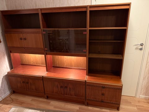11 000 krBokhylla med vitrinskåp och barskåp och tv-bänk i Teak. 50- 60-talTranås17.12.25Lägg till i favoriter.
