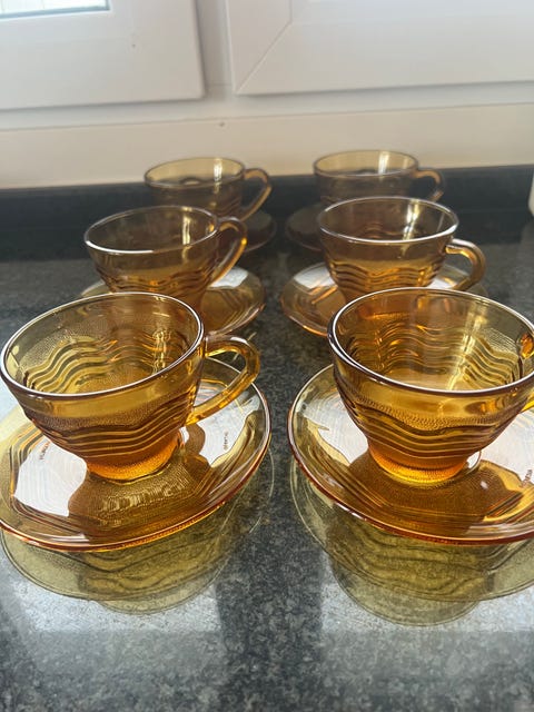 Grönt glas kaffekopp med fat