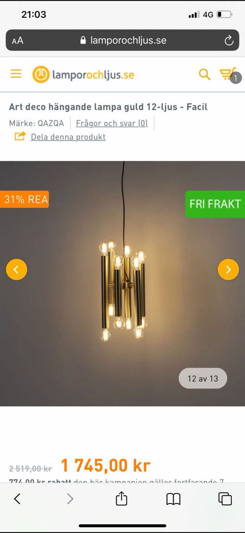 999 krTaklampa By Rydéns ”Flower Ball”, guldfärgad φ37 By RydénsStockholm29 janLägg till i favoriter.
