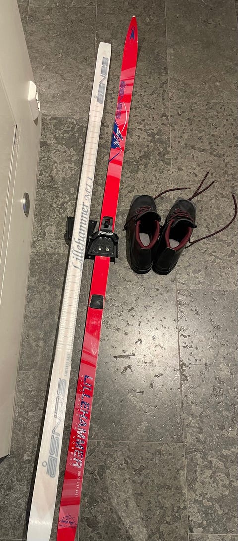 Ski boots and skis