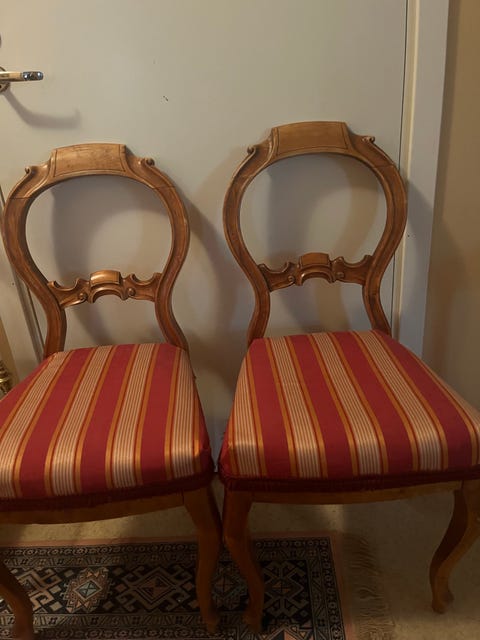 1 000 krAntika trästolar med randigt tygklädda sittdynor 2 styckenStockholm11 janLägg till i favoriter.
