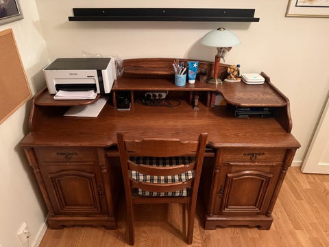 Ett skrivbord som inte längre behövs av någon annan kan vara precis vad du letar efter. Särskilt skrivbord i massivt trä eller elektriska skrivbord kan vara kostsamma, men du kan hitta ett passande alternativ betydligt billigare begagnat. Ett bra skrivbord har en höjd som passar användaren eller kan justeras efter behov. När du bläddrar bland annonserna - se till att kolla bordets mått och jämför dem med den bästa arbetshöjden för dig.