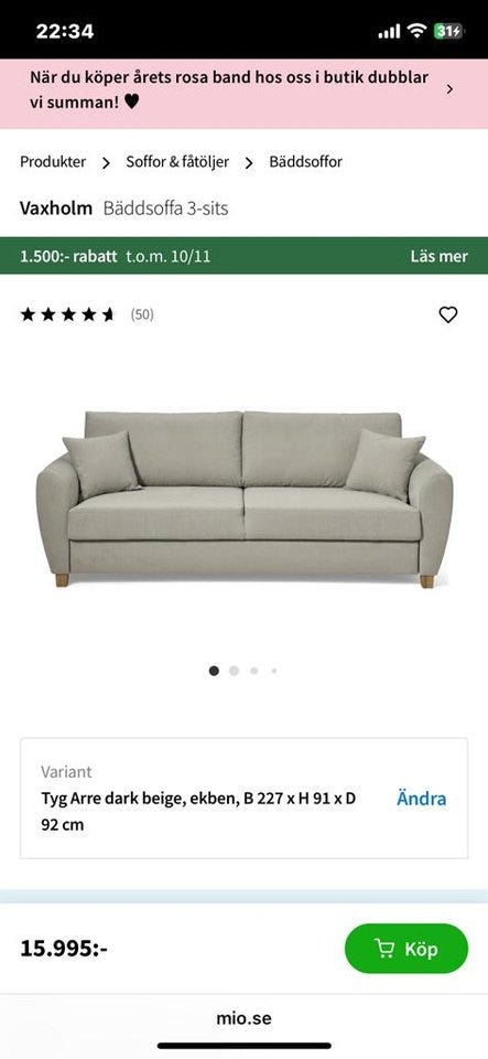 Tips: Tänk på att mäta utrymmet där bäddsoffan ska stå för att säkerställa att den passar.
