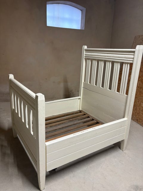 Antik sänggavel växasäng