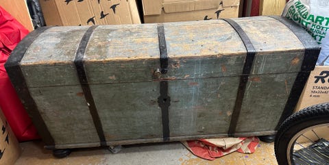 BortskänkesGrön träkista med välvd topp och smidesdetaljerTomelilla14 aprLägg till i favoriter.Öppna annons