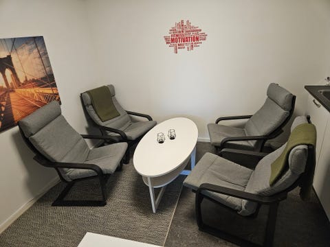 Ovalt matbord med fyra stolar