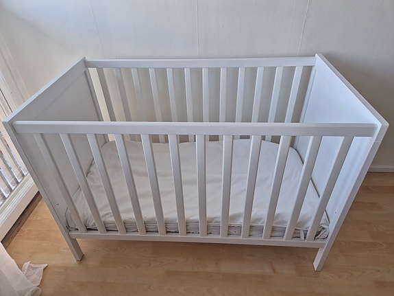 500 krIKEA spjälsäng vit med ribbotten och madrass IKEAGnosjö26 marLägg till i favoriter.Öppna annons