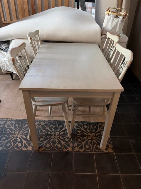 4 000 krCharmigt 1950-tals matbord med klaff och 4 stolar - vitmålat träStockholm2 dagarLägg till i favoriter.