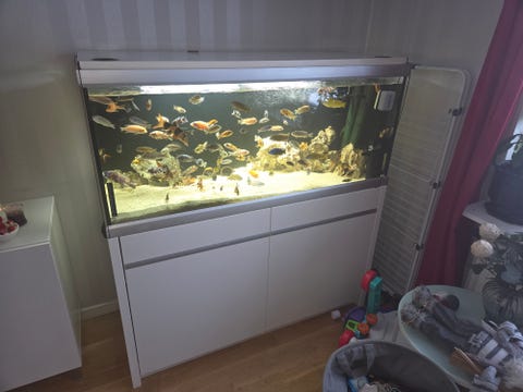 Akvarium med belysning och dekor