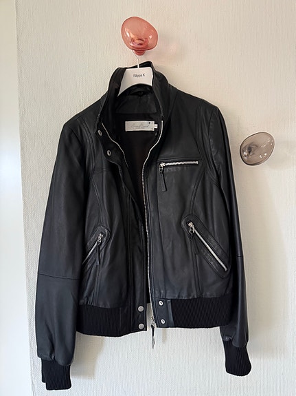 Skinnjacka Kircilar Lammskinn Svart Kontrastsömmar Jeansmodell Stl ca 38 / M