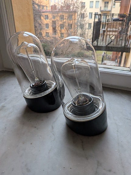 Vägglampor, två st. Okänt var jag köpt.