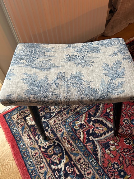 Klassisk pall klädd i Svenskt Tenn-tyg "Drinks" (Josef Frank)
